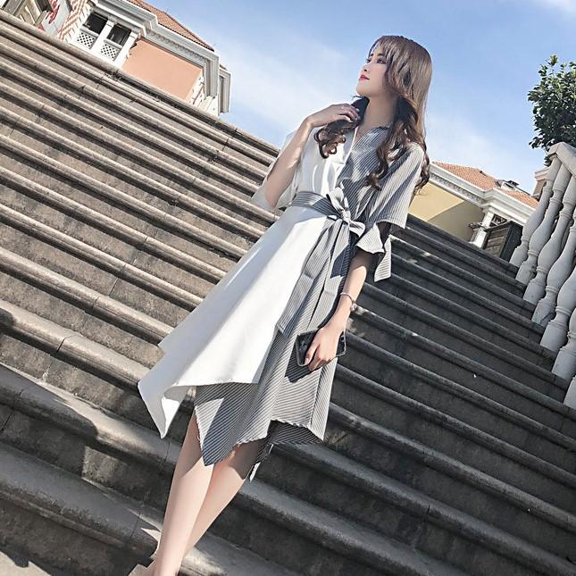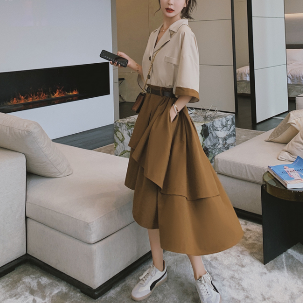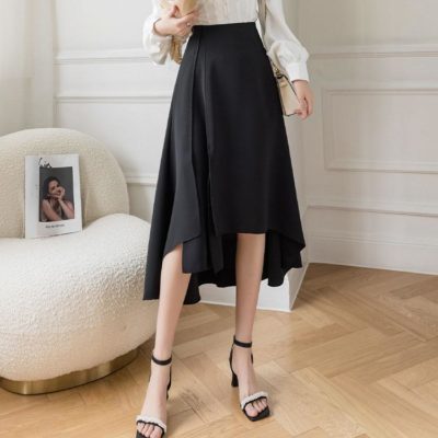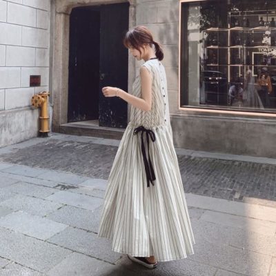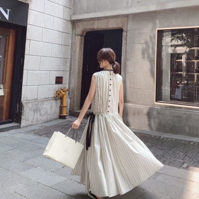 アシンメトリーになっていてウエストのリボンがアクセントに。