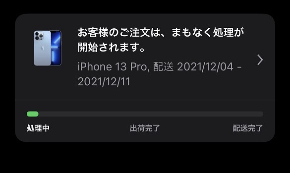 注文の処理中 -ご注文の完了に必要な情報はすべて確認できておりますので、商品の準備が整い次第、最新情報をお知らせして出荷の準備をいたします。この時点ではまだご注文内容を変更することができます。
