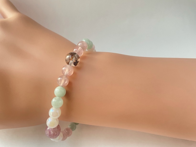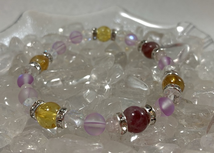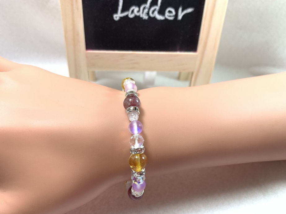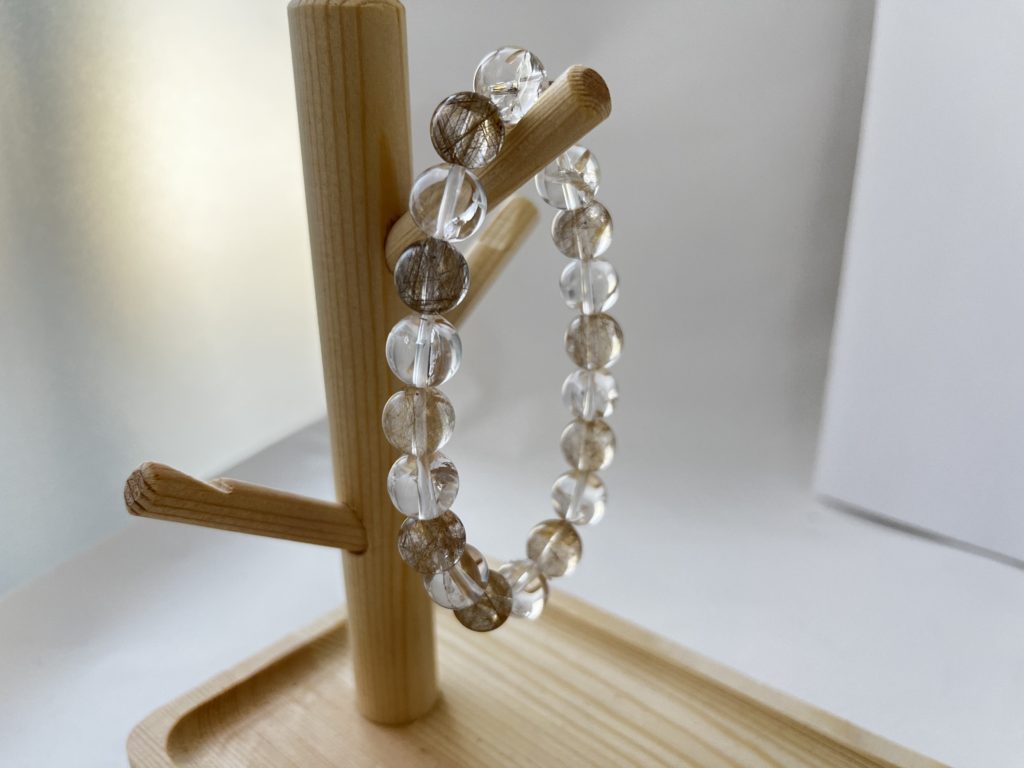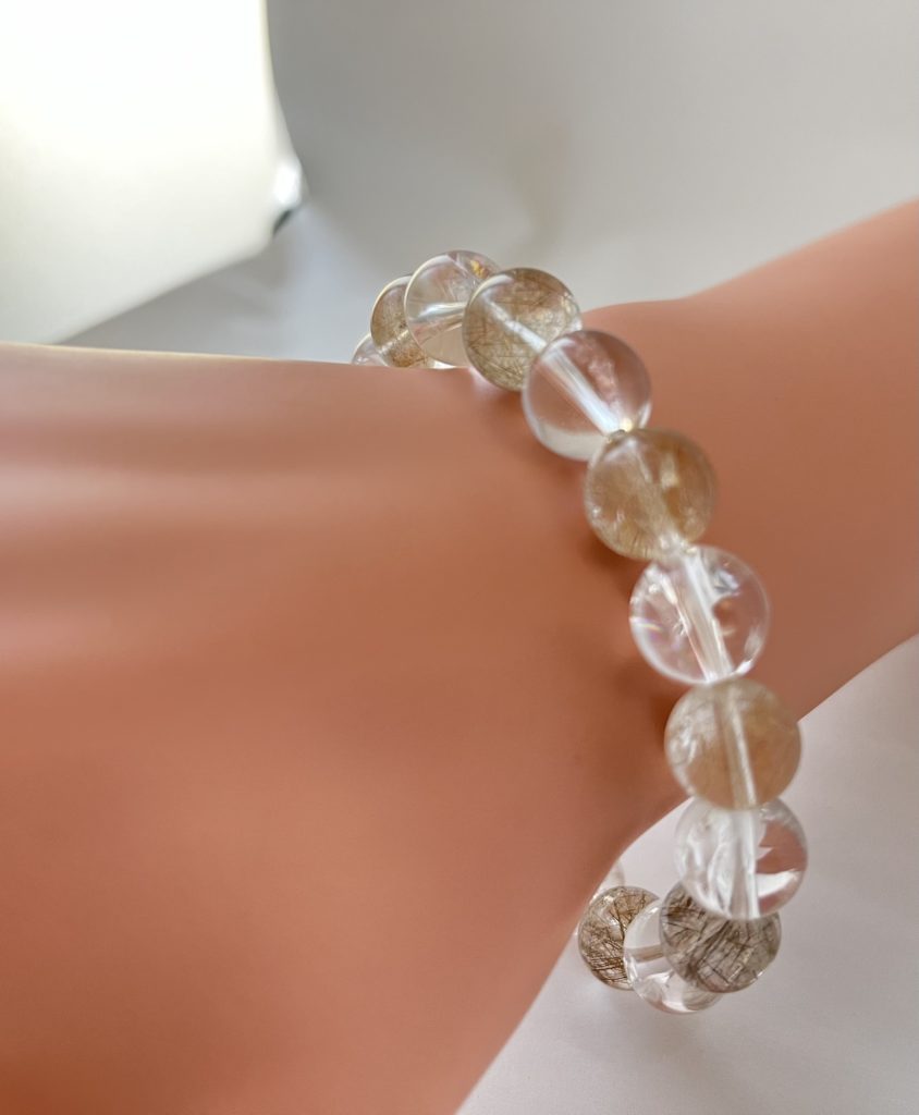 このブレスレッドはルチルクォーツという石が使われているそうです。